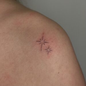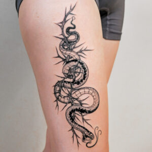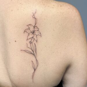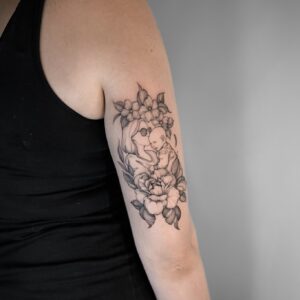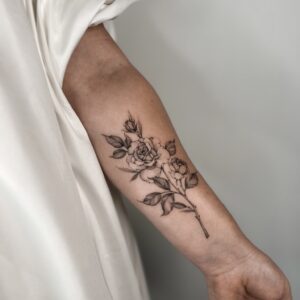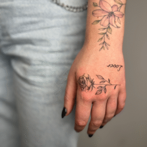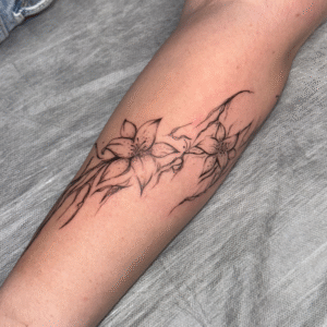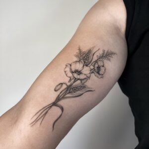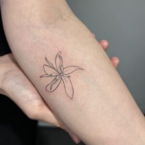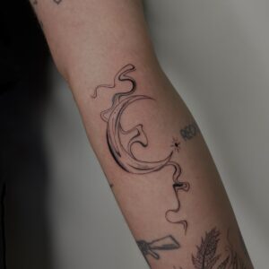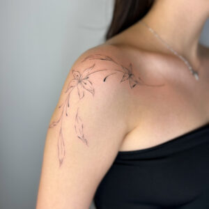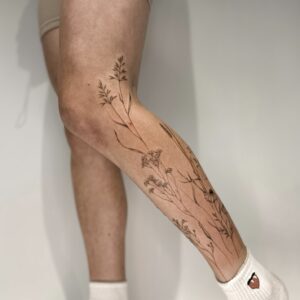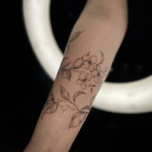I’ve always loved all kinds of creative activities, and drawing has been with me since I was little—something I further honed during five years of studying architecture. I’m currently training in tattooing, which brings me a lot of joy. I create my designs in the fineline style, and I especially enjoy botanical themes. I’d also love to keep developing my skills in micro-realism. I’m excited to grow my passion by decorating your bodies with my art.