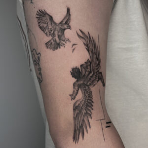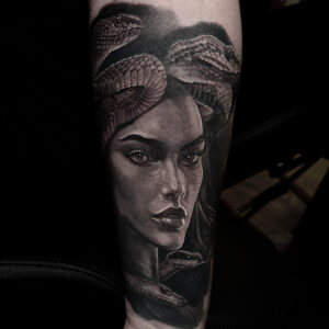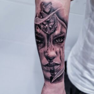 I have been involved in the art of tattooing for over 10 years. I specialize in black and grey realism. My work is inspired by the masterpieces of renowned painters and draftsmen, as well as contemporary artists. A major source of inspiration for me are also tattoo artists who create beautiful, realistic artworks on the body. From an early age, I have been developing my drawing skills, and today I am grateful to do what I love—creating tattoos that make clients come back for more.