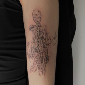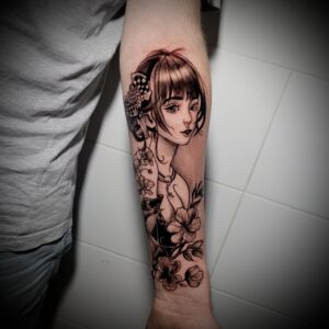Hi! My name is Natalia “Yooshka” Juszka, and I have been working in the tattoo industry for 5 years. I specialize in graphic style with realistic elements. Drawing has been a part of my life for as long as I can remember, and over time I have simply transformed a canvas or a sheet of paper into a human canvas—skin. My work is inspired by music, literature, painting and drawing across different artistic eras, as well as photography, sculpture, and women, while I also strive to find beauty in everyday life. Privately, I love traveling, writing unpublished books, painting artworks and nails, and watching F1 on weekends—but that’s just the tip of the iceberg. If my work resonates with you, I’d be happy to create something special just for you.