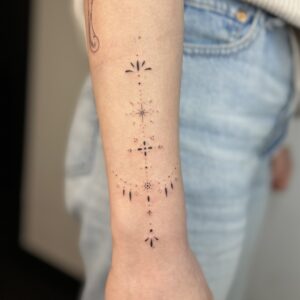 Ever since I was a child, I’ve loved drawing and took part in numerous art classes. I’m currently studying architecture and also create ceramics as a hobby. I love nature and often draw inspiration from it for my artwork. Tattooing has become a great passion of mine—it’s an art form that, for me, combines precision with creativity. My main styles are fineline, abstract, and dotwork. In the future, I also plan to develop my skills in micro-realism. I’d be delighted to create something unique to decorate your body.