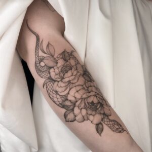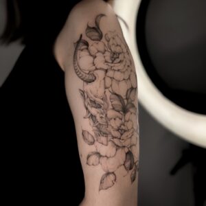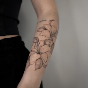 Kasia Khylio is a master of creating unique floral compositions, often brought to life using the freehand technique. The design is crafted directly on your skin, making each tattoo a one-of-a-kind work of art.